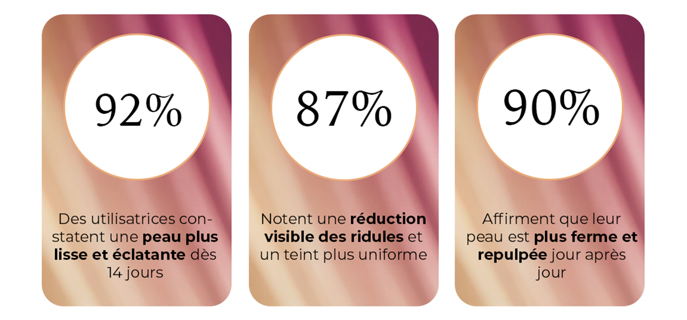 ✓ Réduction visible des rides et ridules ✓ Fermeté, élasticité et éclat renforcés ✓ Hydratation intense et durable ✓ Texture légère et pénétration rapide